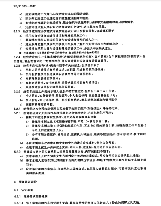 > 《RB/T313-2017 汽车租赁服务认证要求》标准全文
